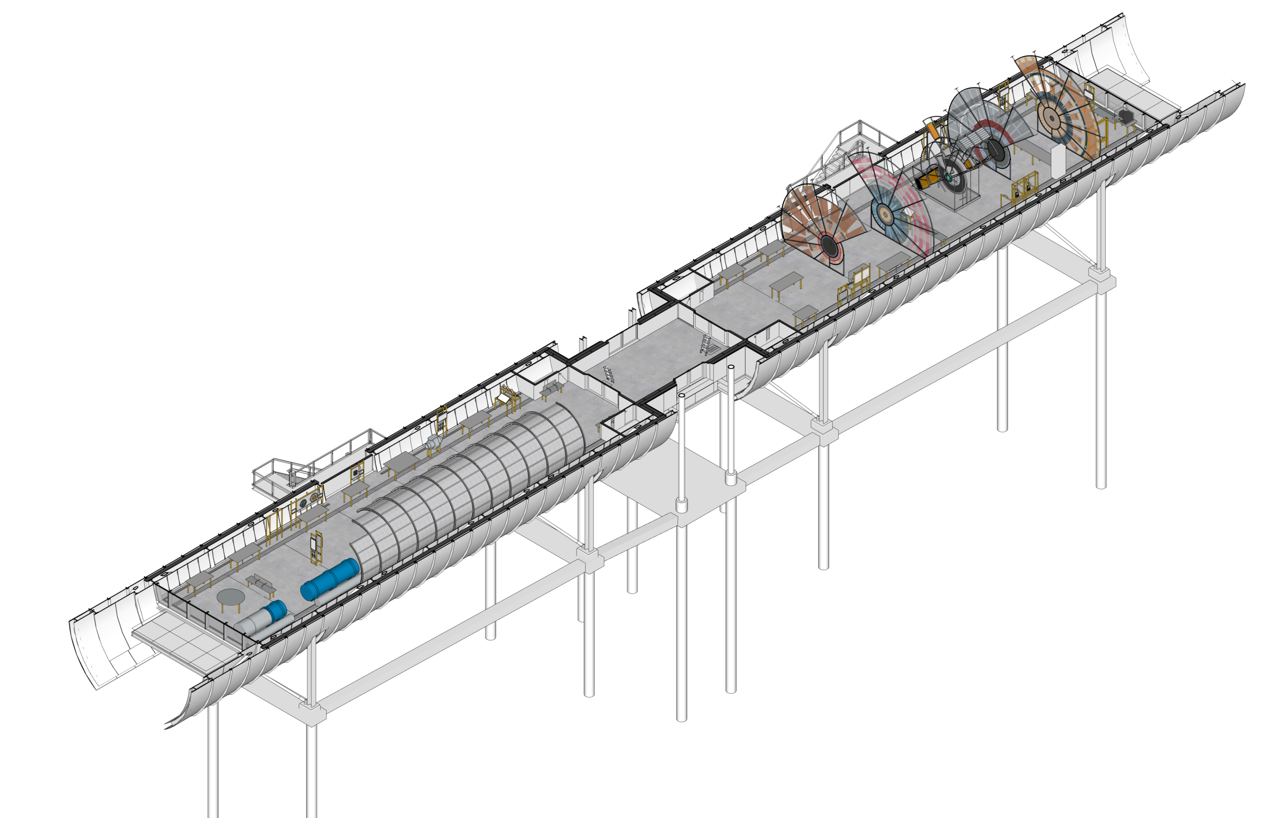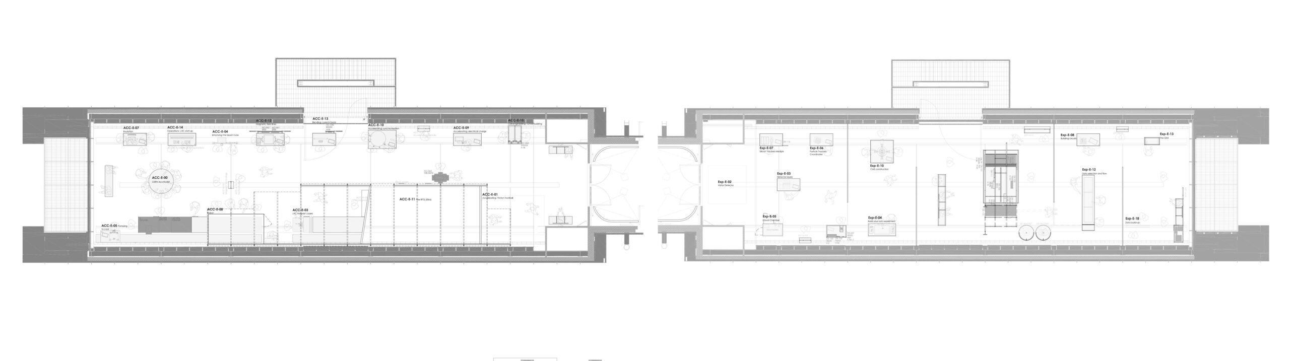 This exhibition immerses visitors in the heart of CERN and its particle gas pedal. The “Accelerate” space is devoted to the principles of acceleration and the forces involved (magnetic, cooling, insulation, etc.). The tunnel created by the architecture is a prerequisite for the scenographic design, and already offers a certain idea of immersion, driving and shaping the design, distribution and visitor journey. A 1:1 reconstruction of part of the LHC traces a continuous line of exploration in space. All exhibitions are organized in dialogue with this line and the tunnel. The LHC is an animated entity around which the public, mediation, objects, collections and animations swarm. The “Collision” area presents the detectors: the Large Hadron Collider, the detection of elementary particles and how to process the data received. Large, transparent graphic panels depict the collider’s layers on a tunnel scale, like contemporary stained-glass windows.The exhibition is mainly made up of hands-on manipulations and immersive devices to make CERN’s discoveries, scientific research and technologies accessible and entertaining for all audiences.