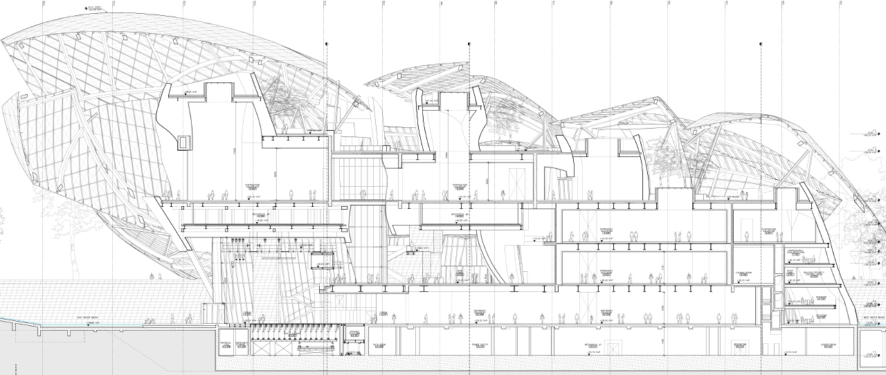 La Fondation Louis Vuitton est installée depuis 2014 dans le navire de béton, de bois et de verre conçu par Gehry Partners aux abords du Jardin d’Acclimatation. Outre les 3 850 m² de surface de musée proposée pour accueillir des expositions d’art contemporain, un auditorium modulable permet d’accueillir conférences, concerts et événements tout au long de l’année.
