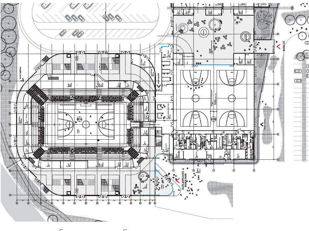 Réhabilitation de l’Espace rouge, salle existante du Cholet basket avec extension de la jauge à 5 000 places et construction d’une nouvelle halle événementielle dédiée aux salons et aux spectacles (Espace blanc)